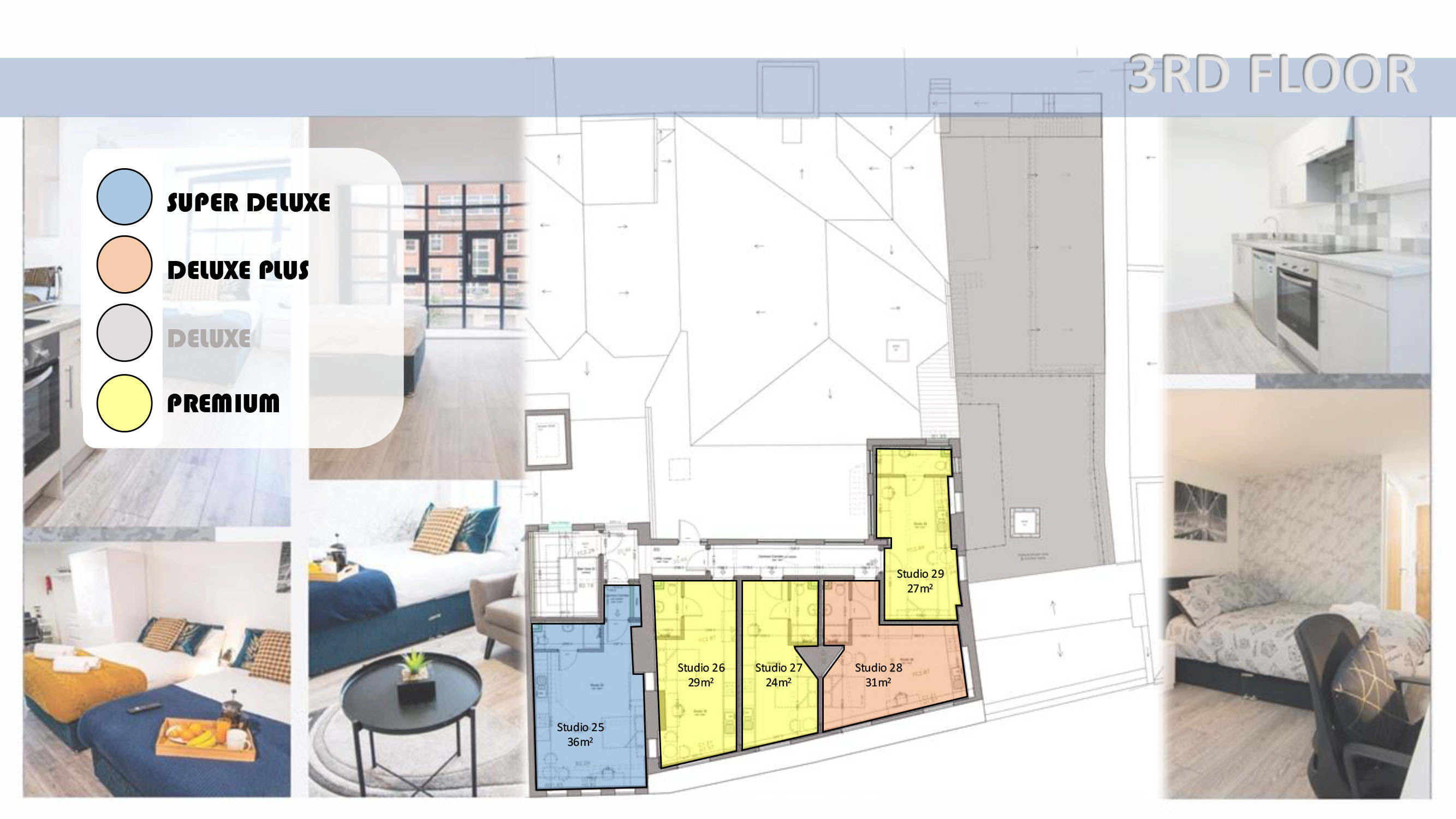 Our interior design team has taken great care to craft every studio with your comfort in mind.